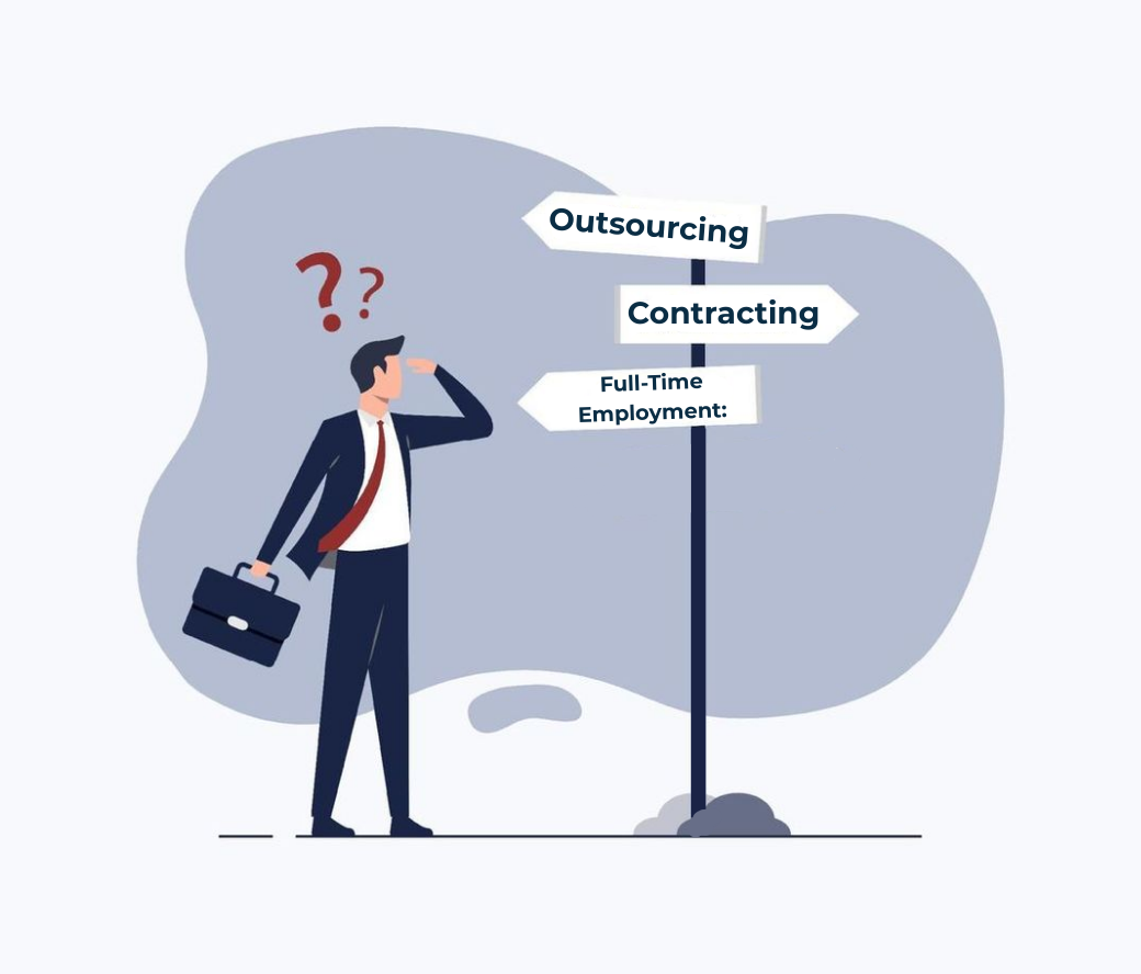 Outsourcing is fundamentally different. Instead of hiring a person, you engage a company to take responsibility for a business function.